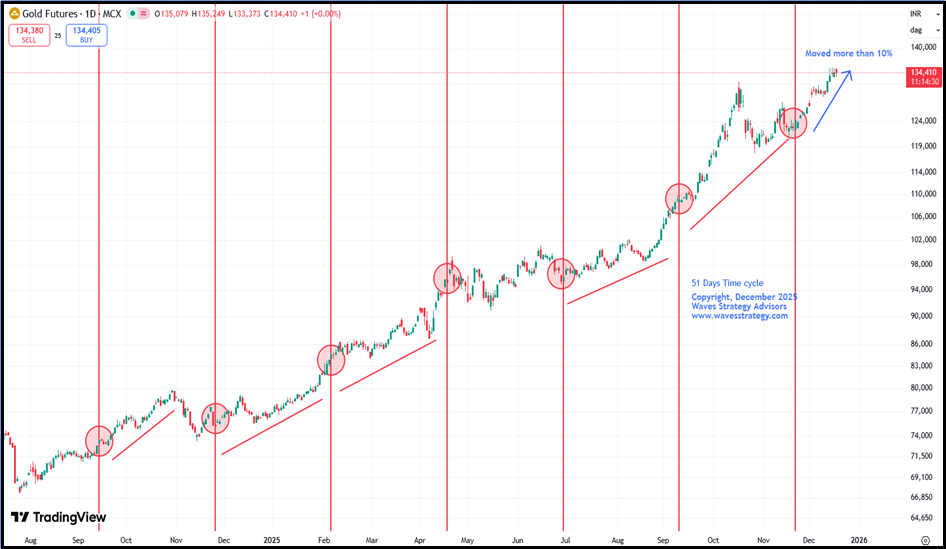 We captured more than 10% rally in Gold well before it began using Time Cycles and simple price indicators. Gold not only achieved our projected targets but also moved decisively beyond them. This insight was highlighted in our previous Monthly Report published in the month of November 2025, where we had anticipated the rally in advance.