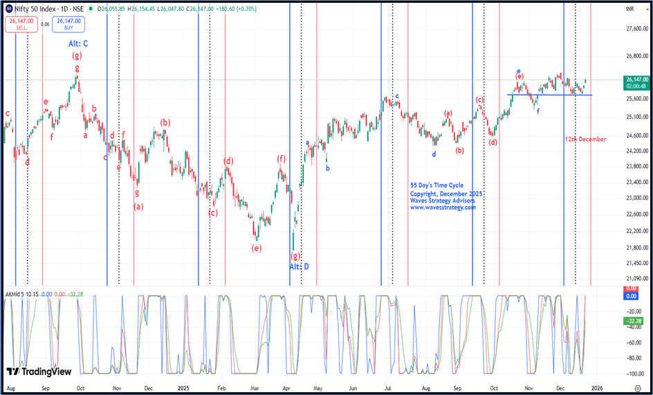 Dec 22, 2025Nifty daily chart with 55 Day’s Time cycle