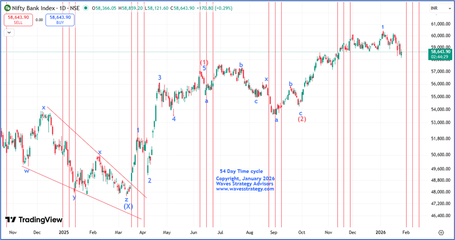 Bank Nifty Daily chart with 54 Days Time cycle: