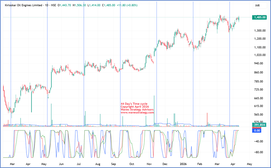 KIRLOSENG Daily chart with 44 Days’ Time Cycle