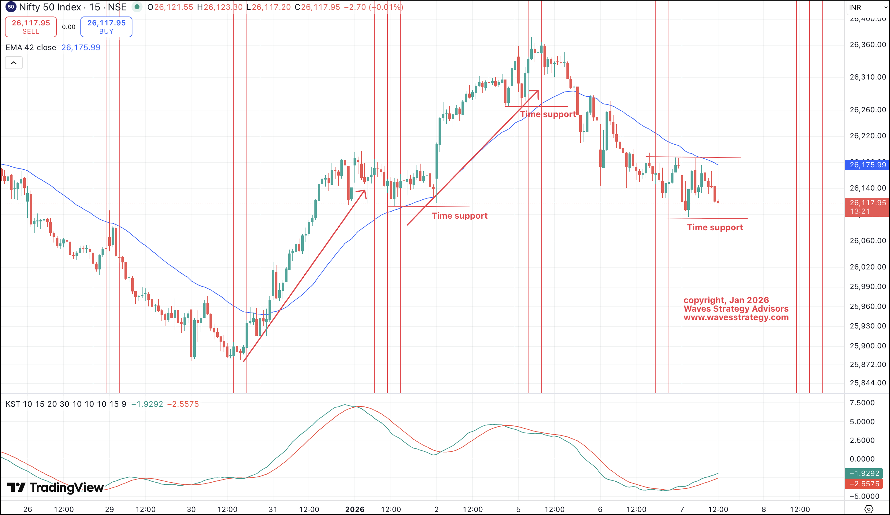 As per above, time support area is near 26090 levels. 15 minutes close below it will result into pressure as time turns on sell side until 8th Jan 12.45pm.