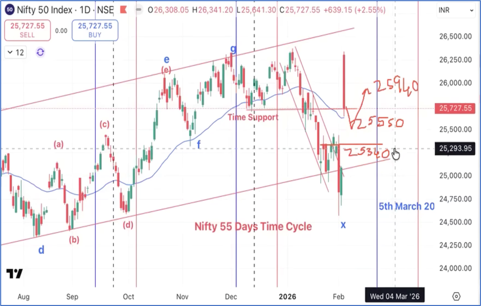 We have posted a path ahead for Nifty using Neo wave and Time cycle in a short video published in our social media platforms like Twitter(x) on 3rd February 2026.