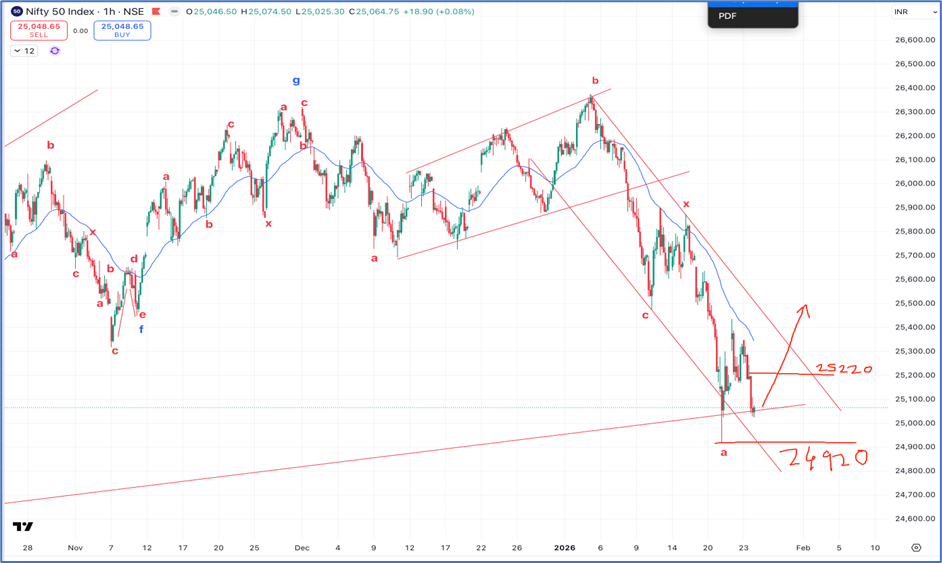 Nifty hourly chart Anticipated in our video dated on 26th January 2026