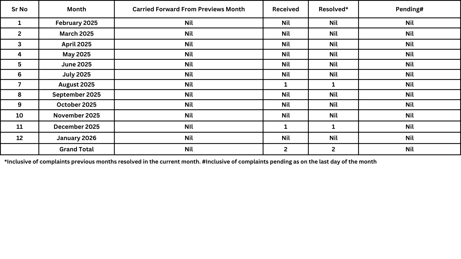 *Inclusive of complaints of previous years resolved in the current year. #Inclusive of complaints pending as on the last day of the year.