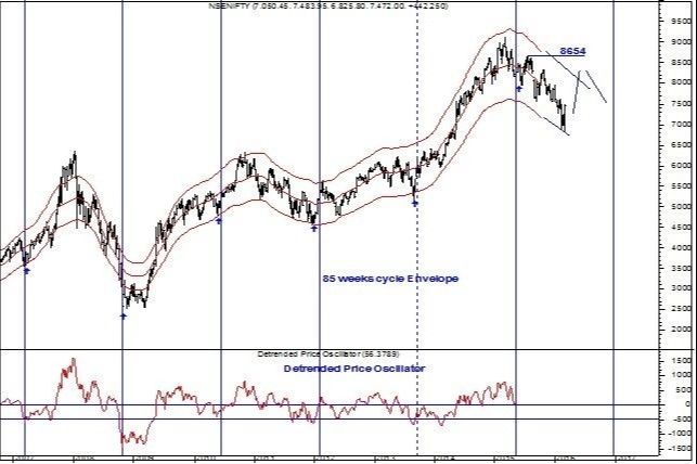 In a nutshell, there is high possibility that the trend might break above the channel resistance as well near the level of 7750 - 7800 and might cross above 8000 as there is change in market dynamics. Volume MA, Volume ROC also confirms this subtle shift which might not be visible to majority. The methods that worked previously during the downtrend of past one year might require tweaking and the surprises will be on upside. Looking at weekly Time cycle there is high